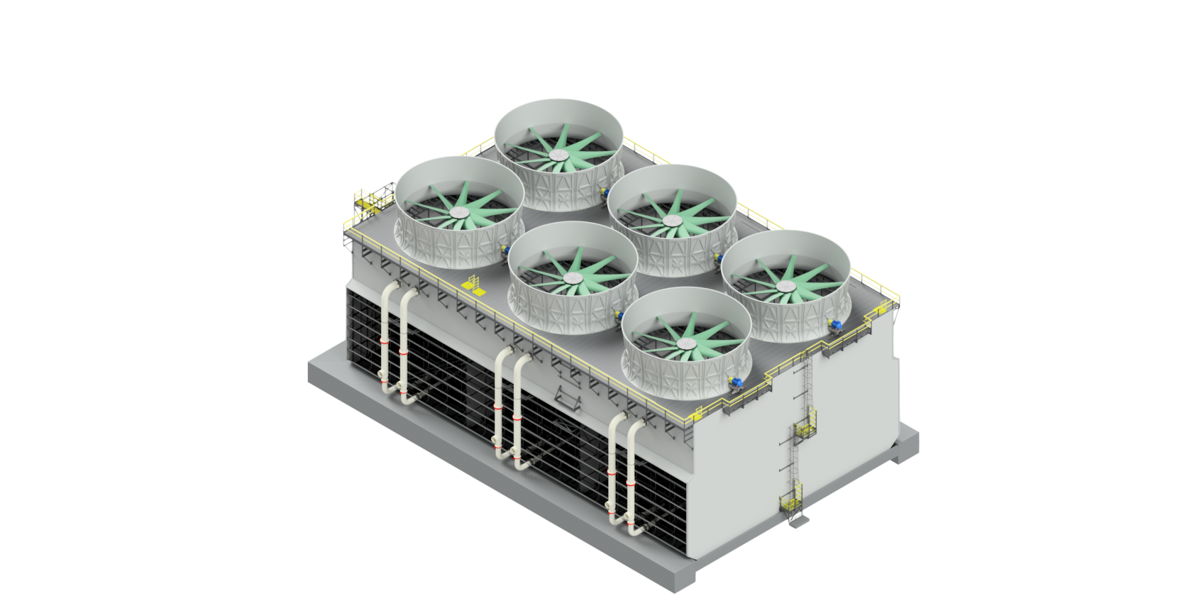 This design allows a wide range of process fluids to be cooled efficiently, with the heat exchanger integrated directly into the tower footprint for a compact and reliable solution.